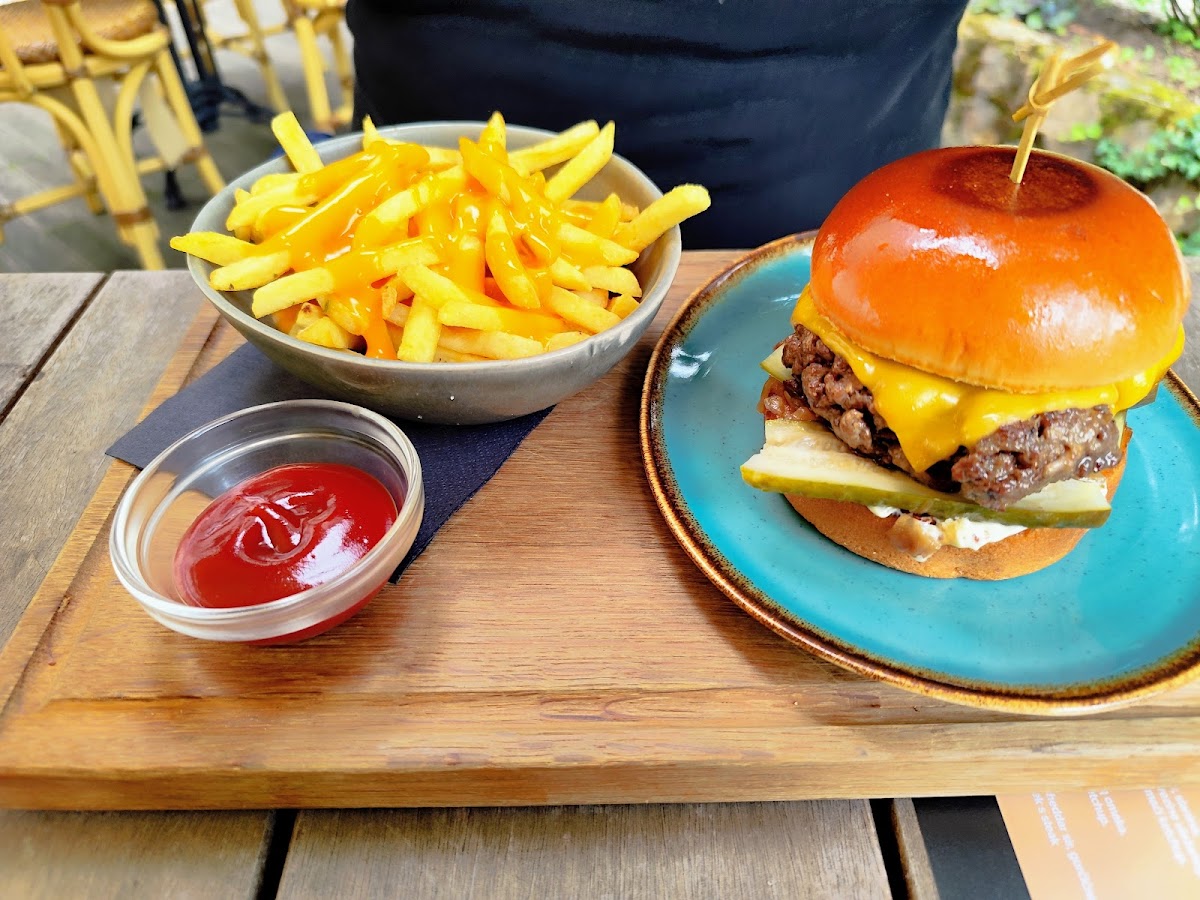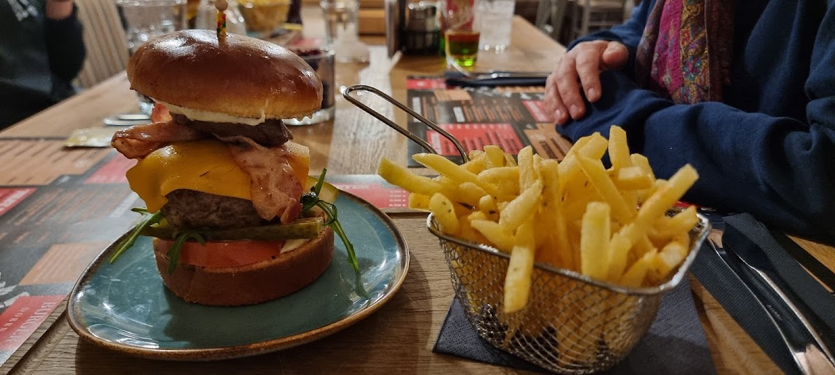 One of the standout offerings at Steak & Burger Dobrna is the Classic Cheeseburger. It’s a simple yet satisfying dish, crafted with a juicy beef patty, melted cheese, and fresh toppings, all nestled inside a perfectly toasted bun. If you're looking for something with a little extra flair, the Royal Burger might just be your new favorite. With premium ingredients and bold flavors, it elevates the traditional burger to a whole new level.